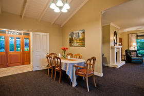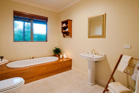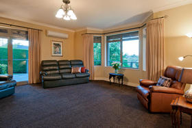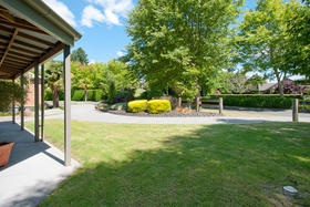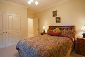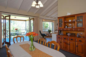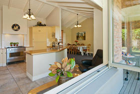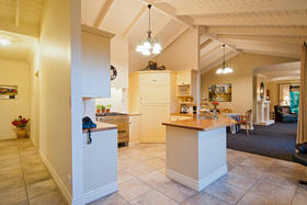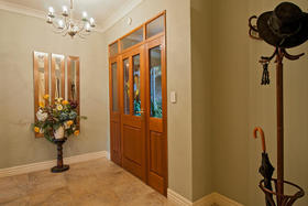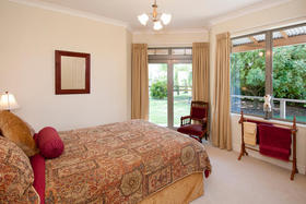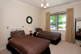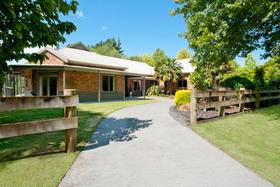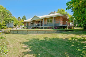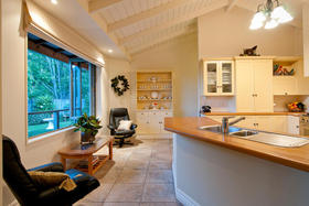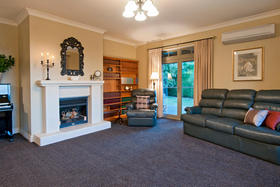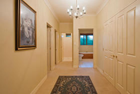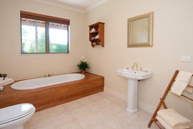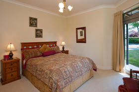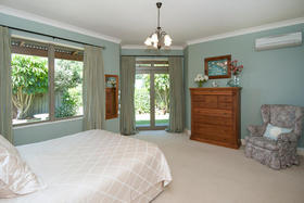 The friendly and safe neighbourhood and the 26 varieties of bird life spotted are just two of many reasons to love living here. With references to Australian colonial architecture this shady home is solidly built with Australian bricks and surrounded with shady verandahs. While the high hedge and many trees shelter and seclude the home, the north exposes a surprisingly lovely view across local farmland. This is the outlook the home's living areas enjoy - whether you are seated at the low window opposite the colonially styled kitchen with American oak benches, dining formally next door with the bi folds open, or ensconced in the lounge with its bay window. Summer will see doors and windows open and much of your living moving out to a verandah with wider spaces for outdoor living on the north side outside the dining room, and on the west outside the lounge's French doors. The spacious gracious master suite also has French doors to the garden from its east, morning sun, side.