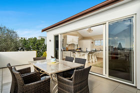 An exquisite masterpiece, sits privately elevated and in a sought after cul-de-sac within prestigious Palm Springs. You will be drawn by the ever changing sight of the ocean to the north and Papamoa hills to the south, all to be viewed from the everyday living space.