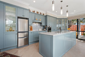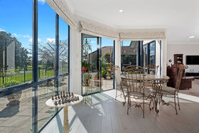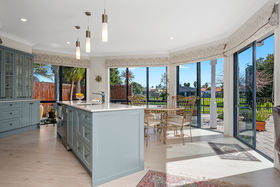 The generous and flexible open plan living is both modern and elegant and priority has been given to capturing the sunshine and filling the living spaces with light and warmth. The expansive glazing in this area delivers a unique panoramic connection between the indoors, the paved patio and on to the waterway reserve.