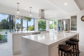 Wrought iron gates open wide to reveal a gorgeous 'Cape Cod' style home set in lush tropical grounds. Inside, the home has a lovely feel and is a visual delight. Light and bright with neutral colours throughout, the spacious five bedroom single level home has been designed with meticulous care to capture the stunning harbour views.