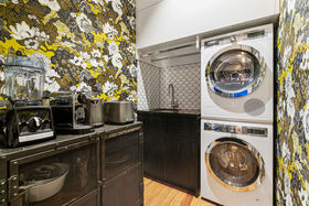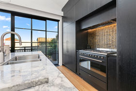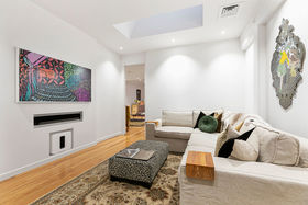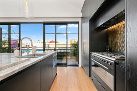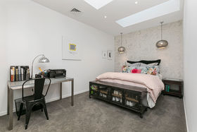Dark stained oak, granite, stylish tiles, statement lighting and high end appliances are combined to form a sophisticated, entertainers kitchen complete with wine fridge and adjacent scullery/laundry. Original features and rimu floors complement the warmth and ambiance of this home and flow through to a second spacious living/media area. A large master bedroom and even larger second bedroom/office share a luxuriously tiled family bathroom and equally glamorous powder room. Storage is well catered to with substantial double wardrobes and even the original walk-in concrete safe.