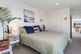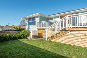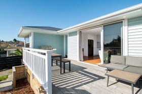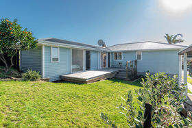 It's painted an on-trend soft minty blue with crisp white double glazed joinery, crowned with a new charcoal colorsteel roof. Re-wired, re-plumbed and renovated to an immaculate standard, this home is extremely welcoming and move in ready. The L-shape works amazingly well, with bedroom wings flowing from a central, open plan kitchen/diner and living area. Stylish and chic with a large island/breakfast bar perfect for hosting family and friends, warmed by a cosy wood fire and original rimu floors, this is an entertainer's dream space opening out to an expansive north facing front deck, BBQ area, and manicured front yard.