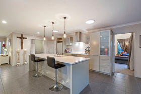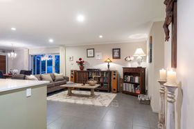 The open plan second living room with kitchen and dining, is perfect for family. Entertaining spills to yet another patio area and a sun room with featured East and West bi-fold doors. Via these doors is your inground pool which captures the suns rays all day long!