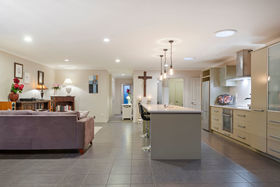 The double timber door entrance and high wide foyer with bi-folds to a water feature, provides a hint of what's to come. A gas fire provides ambience for the perfectly positioned separate lounge, which overlooks only one of the outdoor living options.