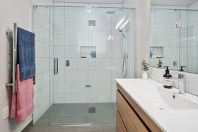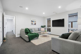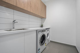 The kitchen, dining and family areas are extremely spacious and open plan, with a soothing pool aspect and beyond to the wide northern reserve. The designer kitchen undoubtedly is the heart of the home, with eye-catching classy features including a picturesque splash-back. The discreet butler's pantry is loaded with storage and is guaranteed to ensure your bench tops remain clutter free. The combined effect of floor to ceiling windows, extra high ceilings and a large sliding stacker, ensures the home is always inviting and filled with light, the perfect place to entertain.