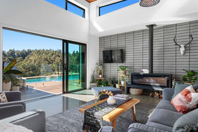 Driving up to this elevated peaceful four hectare (more or less) lifestyle property the excitement mounts as you turn the corner to see the bespoke designed home with complete privacy and stunning water views to the Ohiwa harbour. The mix of honed block, cedar, black, ivory and grey has timeless beauty and the attention to detail and quality of finish in this perfectly laid out family home is immediately apparent. The 10m x 4m in-ground heated saltwater pool, deck and outdoor dining and entertainment area have views to the estuary give you that feeling of being on vacation. Inside a well-appointed kitchen, butler's pantry and living area with log fire is centrally positioned and bedroom wings all have views and access to the deck to the left and right. The private master wing has a spacious bedroom and bathroom with level entry tiled shower, luxurious rain head and underfloor heating. A whiskey/media room with access to a separate covered deck area could be an extra bedroom if required. At the other end of the home, there are two well sized bedrooms, a bathroom and a cleverly placed study nook. The storage throughout the home is plentiful and the modern laundry area is effectively equipped. Everything has been well considered in this home, even the separate guest toilet. There is a further access to this property from Wainui Road that has an American style high stud shed with carport which can nicely house a camper, and a small orchard. There are several paddocks that can graze approximately 10 - 12 cattle and some sheep. The location is under 10 minutes to the much loved beachside community of Ohope and a further 10 minutes to the bustling town of Whakatane. With family and lifestyle being at the top of our minds within our new normal, you don't want to miss this opportunity to own a piece of paradise in this spectacular part of New Zealand.