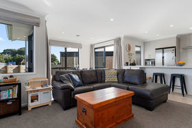 Just inside the front entrance you will find a small double bedroom, which would also make a great home office. The open plan living boasts a modern kitchen with generous food preparation spaces. The view from the lounge and dining looks out to the skate park, with a playground and recreation area, that the kids will love. The brand new library and sports facility is also within easy walking distance and the lovely Kaimai views from the home add a really special backdrop.