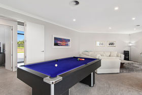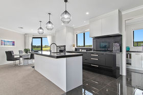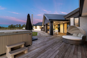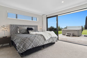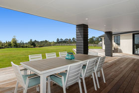 This extremely generous 386 sq m 'Stonewood' home is ideal for a large family or people who enjoy hosting overnight guests; and this is a great home for entertaining as well. It's a spread out north facing home where central, open plan living is flanked by a huge media room and adult's zone one side, children's lounge or playroom and family bedrooms the other. Ample sliding doors link kwila deck along the front, a covered area outside the living spaces. The well- appointed kitchen with double wall ovens is backed by a spacious scullery, fronted by a large stone island. The master suite is set privately at the end of the home, its en suite featuring big double shower and dual hand basins. The home also has an office, sixth bedroom or guestroom, large laundry and triple garaging.