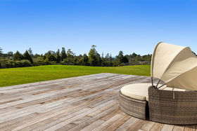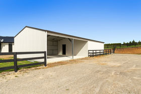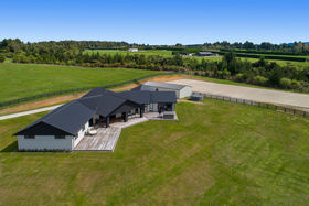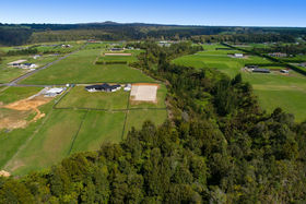 Form the home you overlook a huge lawn (ample space for a pool and landscaping or some of it could be fenced for more grazing) and three post and rail fenced paddocks bordered by bush through which are peeps to the coast. A separate 112sq m four-bay shed includes storage and extra vehicle parking plus two big looseboxes which open to an arena.