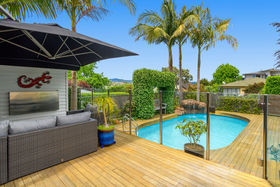 Nestled on a gentle slope, with expansive views out towards the inner harbour, the stylish granite kitchen with spacious scullery and dedicated drinks station is brightly lit by the large skylight above. A central open dining area flows to an elegant lounge with large picture windows framing the view, or out to a sun soaked deck overlooking a fabulous pool area with trickling water feature, an outdoor fireplace and onto an established potager garden replete with fruit trees and raised vegetable plots. A bonus is the grassy section large enough for children and pets to play, or there is the option to subdivide and reap the rewards.