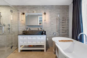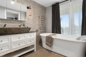 Enjoy a choice of decks above the pool (surrounded by yet more deck area) the verandah and a wonderfully social patio with an outdoor fireplace, scene of many an entertaining evening.