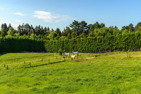 The lower plateau, where there was a kiwifruit orchard, now sports an arena which has been appreciated by local equestrians; a floating roof beside it covering looseboxes, tack room and fodder storage. Plenty of paddocks of flat and sloping grazing for horses or other stock, or for planting a horticultural crop like avocados.
