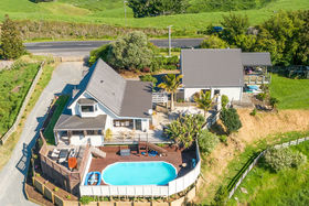 So many options on this sunny north west facing ten acres (approx.) with Mount views and wide Kaimai Ranges views.