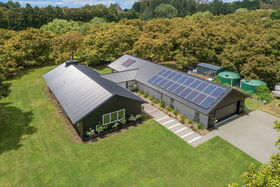 Avocado trees enhance your lifestyle on 2718 sq m in a popular location near Te Puna village. The dozen or so mature avocado trees create an attractive and peacefully secluded setting and provide up to $10,000 income (depending on the season). Tucked into the orchard is a near new contemporary home in two wings separated by a glass foyer. Open plan living with doors to covered deck and an effective solid fuel fireplace, an office nook and roomy separate lounge span one side; bedrooms, bathrooms, laundry, storage and garaging the other. Design and decor is fresh and sharp with just a touch of traditional evident in the kitchen, behind which is a massive pantry. Twenty solar panels, backed up by a generator, allow you to choose to live off the grid, the system a top of the line German one. Grid power is also available. Sewage is eco efficient and two 25, 000 litre rainwater tanks with filtration supplement town supply. A hidden haven here below the Minden Hills where you can opt to add further landscaping and more open space or relish the sense of living in a home in a clearing, approached via an Avenue of trees. This property abuts a rapidly developing lifestyle enclave where permanent access will eventually be off Ainsworth Road. Boundary indicative only. To view Property Files, copy and paste link: https://www.propertyfiles.co.nz/property/NTTG00578