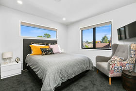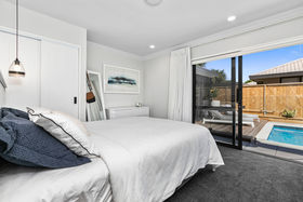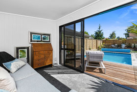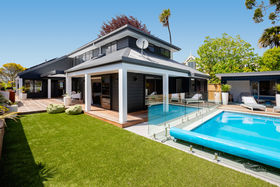 The front entrance is bathed in soft light from a wall of glass bricks, guiding you through spacious casual living with a soaring cathedral ceiling, to a sunlit stylish kitchen with walk-in scullery and glassed paned feature barn door. The kitchen will delight all with its stone benchtops, high end appliances and space to spread out and create! A front deck with those harbour views, and louvre covered central deck is perfect for outdoor living, BBQs. A fabulous pool and spa pool area complete with pool house - this is a home created to entertain and enjoy fun times with family and friends. Indoor/outdoor flow is a feature of this thoughtfully designed house from formal dining to the large comfy lounge, guest bedroom all opening out to wrap around decks and the pool. Upstairs the sumptuous master suite, a chic tiled ensuite and plenty of wardrobe space.