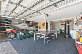 The large boat or camper garage has a workshop area, with another large double garage and games room/storage area.