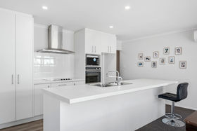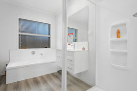 An open plan living, dining, kitchen area sits well for the sun and opens to a sunny patio area with a good size backyard. Three bedrooms, two bathrooms and a double attached garage are all tidy and well portioned.