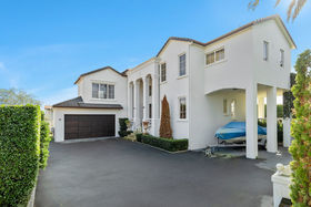 Downstairs, two more bedrooms each with an ensuite, is split by a third living room, all opening to a sheltered and private courtyard with water feature. That makes a total four bedrooms with four bathrooms, carefully planned for complete privacy. An office or fifth bedroom, separate laundry and double garage complete downstairs along with lots of extra parking.