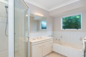 The master suite also allows for stepping out into the garden, as well as a large walk-in-robe and wet-floor ensuite. Move around the home with ease, with three more well-appointed bedrooms and the family/guest bathroom positioned off the hallway.