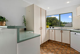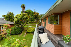 Being set above the street on a corner site, this 90s era family sized home enjoys sunshine and sweeping views out over the leafy green neighborhood. Thoughtful planning sees a compact yet highly practical kitchen opening to a large dining area flowing through to a spacious lounge complete with two sun soaked window seats perfect for stretching out and relaxing. Or wander out to the adjoining deck ideal for enjoying summer days and evening BBQs entertaining family and friends.