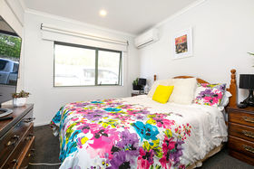 Two storey home offers open plan living area and master bedroom on the upper level and 2 double bedrooms and bathroom downstairs.