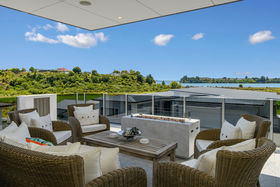 The pictures of this luxurious Bethlehem property are amazing, but nothing quite compares to seeing this gorgeous home in person. Imagine yourself in a magnificent 5 star hotel, add some soul and personality and that's what you'll find in this exceptional home built five years ago by luxury home builder Asset Homes. The grand front steps, oversized front door and high stud height set the scene here. A choice of outdoor living areas give you either sheltered privacy while you barbecue or a comfortable front row seat to the inner harbour views. The current owners have added their stamp to the kitchen with new granite benchtops and the butler's pantry is like a second kitchen complete with butlers sink and wine fridge. Everything in this home is of the highest quality, this is apparent in the standard of finish in the gorgeous bathrooms, separate laundry, tiled fireplace and indulgent floor coverings, there is a long list of quality chattels that are included with this home. Camper or boat parking is accommodated here alongside the XL garage which accesses the main living area via a lift. Every inch of the 767sqm (approx.) site is impeccably finished with the small amount of lawn and garden intentionally kept low maintenance. St Michaels is a neighbourhood renowned for the high quality of homes within it and this is a home that cements that standard.