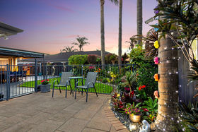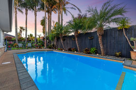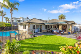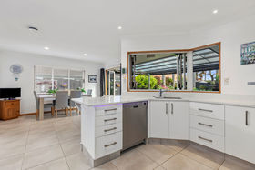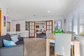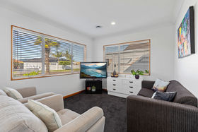 Inside, beautiful floor tiles create a welcoming entrance, leading you to a versatile front room " ideal for a home office, business, or a second lounge. The spacious kitchen includes a serving window for easy access to the outdoor entertainment area.