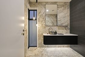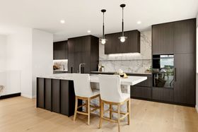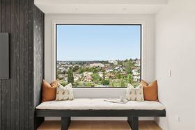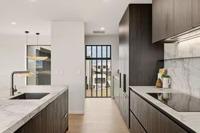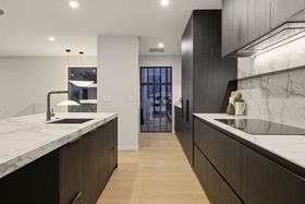 Stacking sliders open to a covered balcony " the perfect vantage point to enjoy glittering city lights and golden sunsets. The award-winning Sticks + Stones-designed kitchen and bathrooms showcase luxurious finishes, rich custom cabinetry, and high-end Fisher & Paykel appliances " a dream for the most discerning chef.