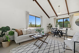 Inside, you'll find a light-filled living space that enjoys a tranquil outlook, creating a warm and welcoming atmosphere. The two bedrooms are well-proportioned, serviced by a tidy bathroom, making the home both functional and inviting.